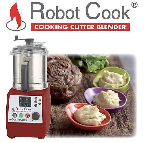 Robot Cook Le Robot Cook®, Cutter-blender chauffant professionnel, est le parfait assistant culinaire des Chefs. Emulsionner, pulvériser, mixer, hacher, mélanger ou pétrir…Le Robot Cook® est l’outil idéal pour élaborer une multitude de recettes froides ou chaudes, salées ou sucrées. Les Chefs apprécieront sa température de chauffe jusqu’à 140°C au degré près et sa qualité de coupe alliée à sa haute vitesse. Le silence de son moteur asynchrone et puissant apportera un véritable confort de travail. Sa grande capacité de cuve inox (3,7 litres) est parfaitement adaptée aux besoins des professionnels.